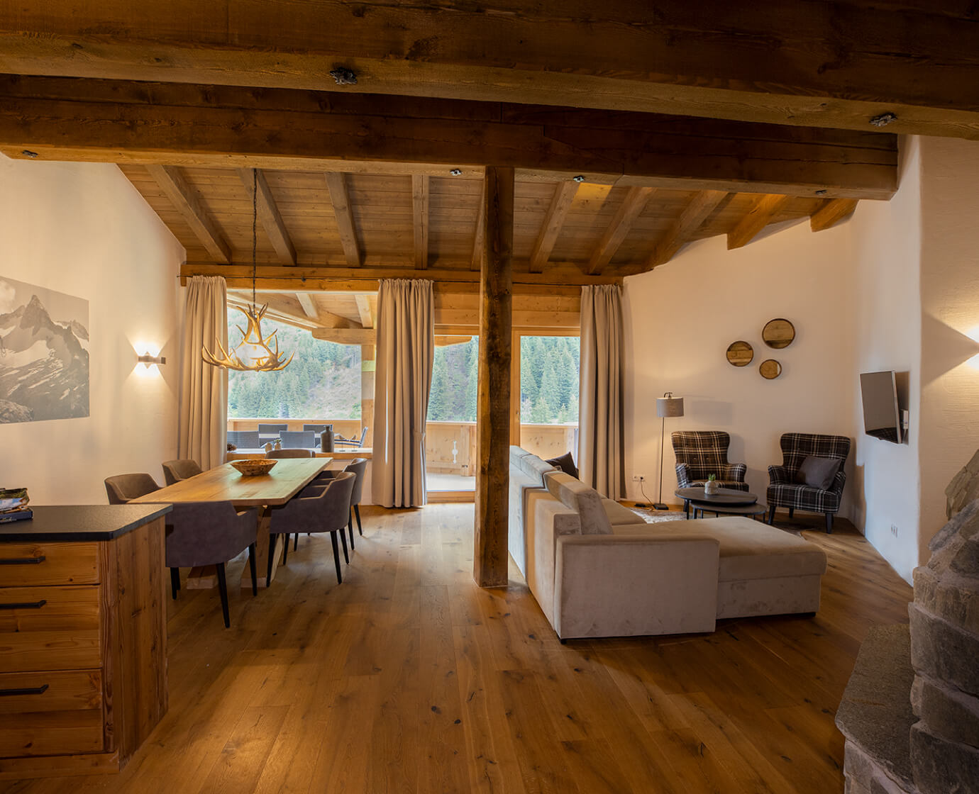 Unsere Chalets sind luxuriös, stilecht und voller Komfort. Die eingesetzten Materialien spiegeln die natürlichen Elemente aus der Umgebung wider: Stein, Holz und Glas. Das natürliche Licht darf hereinfluten und es bietet sich Ihnen zu jeder Tages- und Nachtzeit ein umwerfender Blick auf die umliegenden Berge bzw. den Sternenhimmel. Unsere Chalets befinden sich in vollendeter Harmonie mit ihrer natürlichen Umgebung. In den großzügig angelegten Chalets fühlen sich jeweils vier bis acht Gäste äußerst wohl. Die Fläche variiert zwischen 90 und 145 m2.