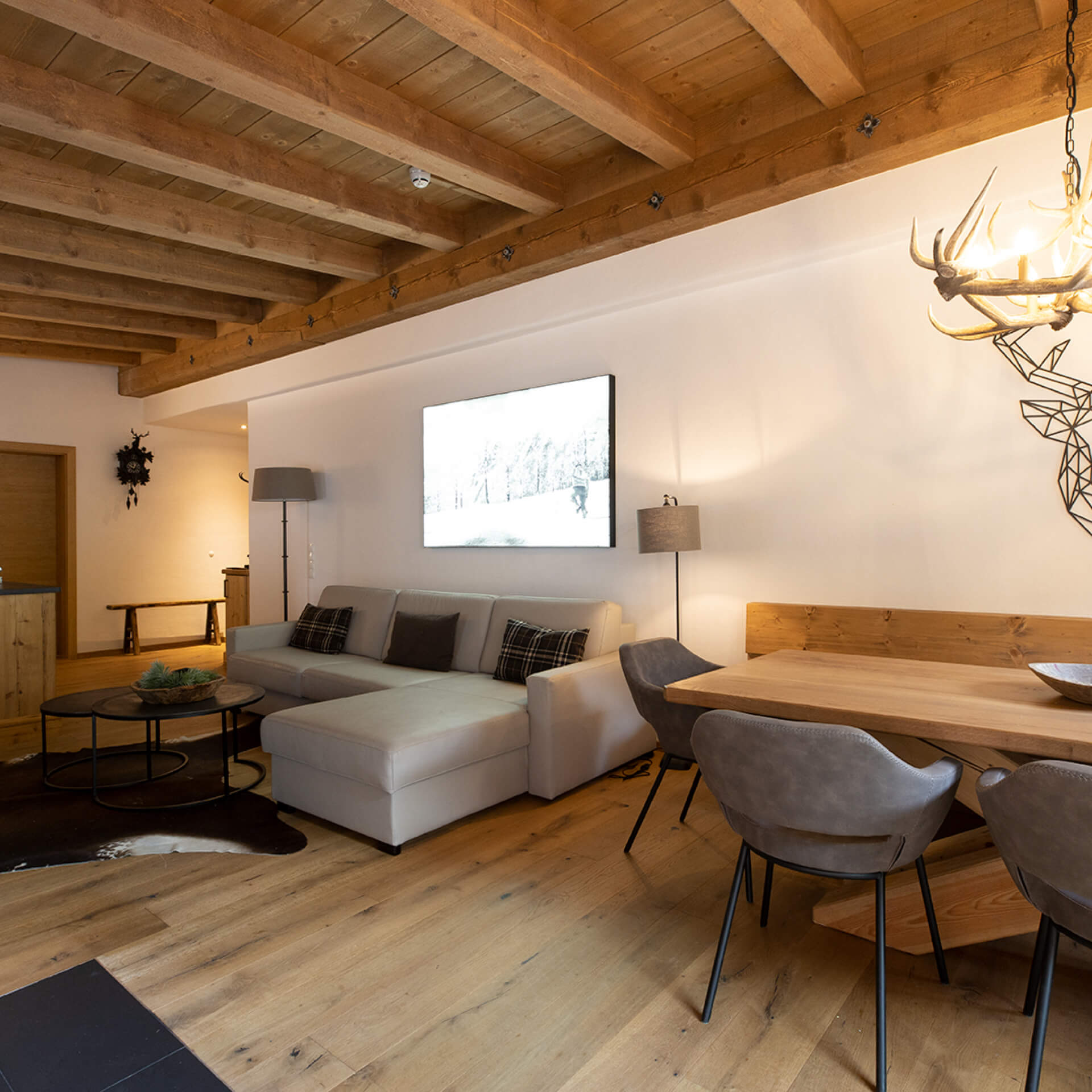 Suitable for 6 - 9 Persons, (max. 6 adults & 3 children), approx. 102 m2. Located on the first floor. This is an apartment with a bunk bed (for children, not suitable for adults) and one single bed. A contemporary interpretation of authentic alpine charm. The ideal springboard for your outdoor adventures.